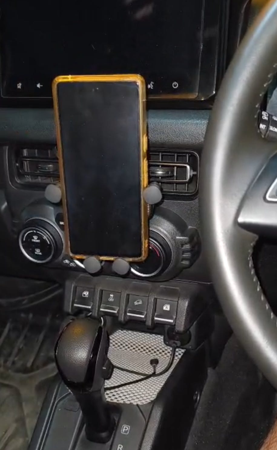 The phone holder is made of plastic material. But it's working fine after a couple of offroad sessions and highway runs. Note that I am using it on a seperate ballmount not on ac grill